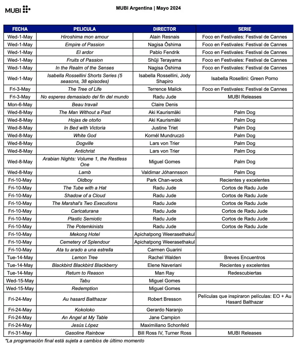 Con una programación diversa y emocionante, MUBI promete ofrecer a sus suscriptores un mes lleno de cine de calidad y entretenimiento sin fin.