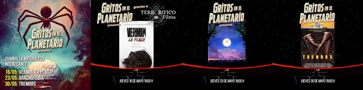 El ciclo se llevará a cabo todos los jueves a las 19:00 h en el Planetario de la UNLP, con entrada libre y gratuita (bono contribución opcional). La programación incluye películas como Aracnofobia (Frank Marshall, Estados Unidos, 1990) el 23 de mayo y Tremors (Ron Underwood, Estados Unidos, 1990) el 30 de mayo, todas seleccionadas cuidadosamente para ofrecer una experiencia de terror única y emocionante.