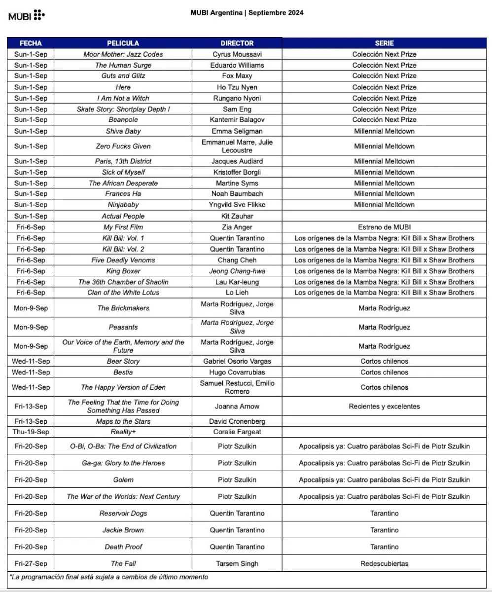 MUBI continúa destacándose por su enfoque en la curaduría de contenidos y su compromiso con el cine de autor y las propuestas innovadoras. Septiembre se perfila como un mes imperdible para los suscriptores, ofreciendo una rica variedad de títulos que exploran diferentes géneros, culturas y épocas, garantizando una experiencia cinematográfica única.