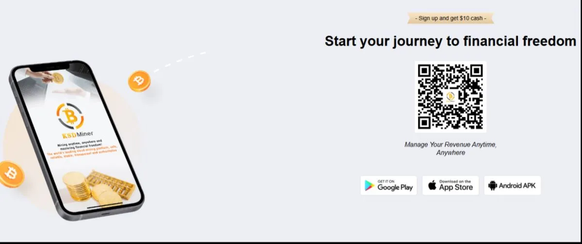 Regístrate en la plataforma de KSD Miner y recibe un bono de $10 al registrarte. ¡Una excelente manera de comenzar tu camino hacia los ingresos pasivos!