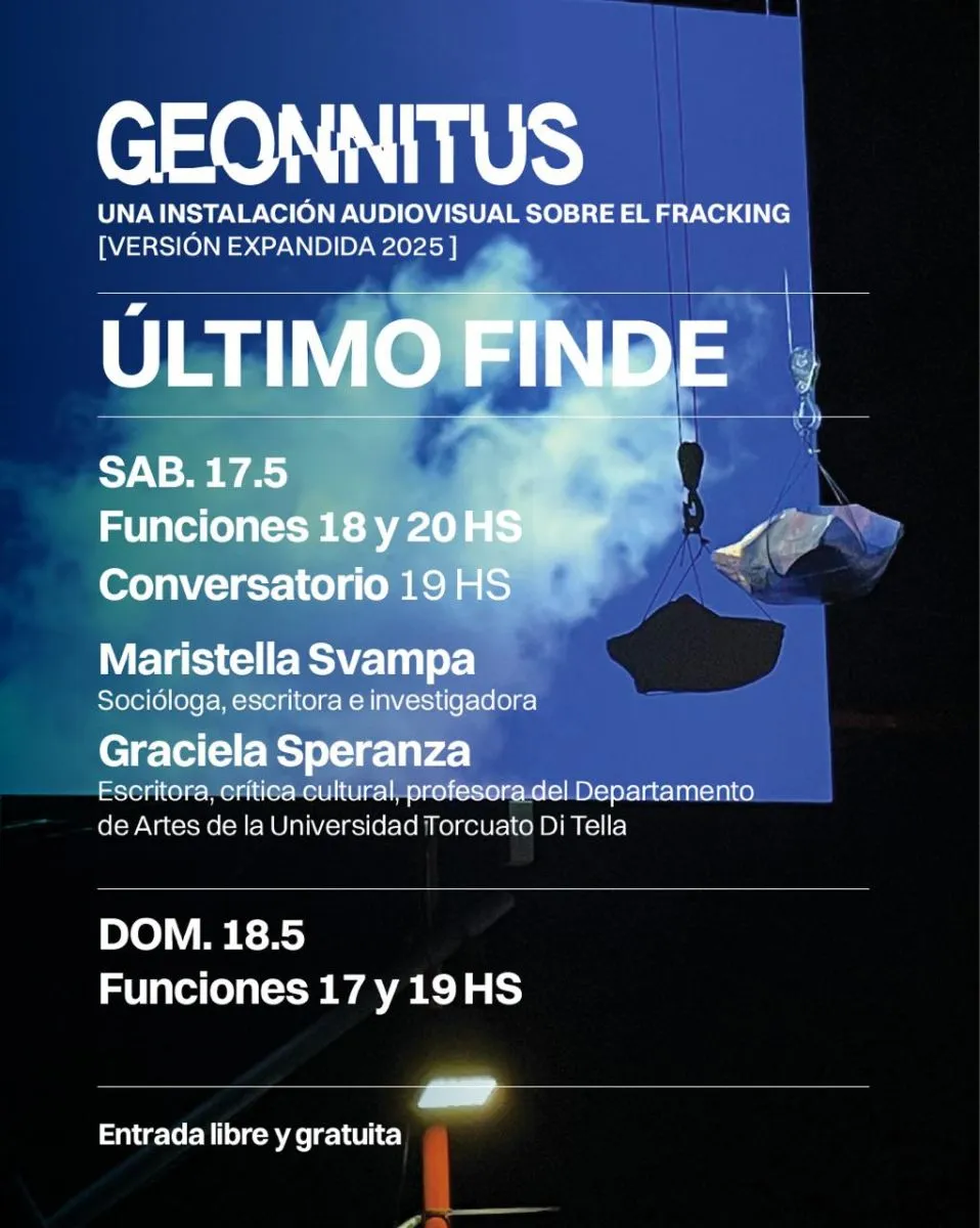 El sábado 17 y domingo 18 de mayo se podrá visitar por última vez la instalación Geonnitus, una experiencia escultórica, sonora y visual que denuncia el impacto del fracking a través de una propuesta inmersiva. La entrada es libre y gratuita.