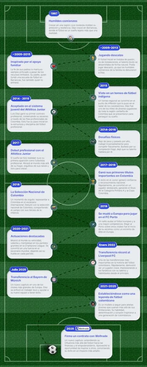 El ascenso de Luis Díaz desde un comienzo difícil hasta alcanzar el máximo nivel futbolístico es verdaderamente notable. Ha forjado su carrera gracias a su determinación, compromiso y una profunda pasión por el fútbol.